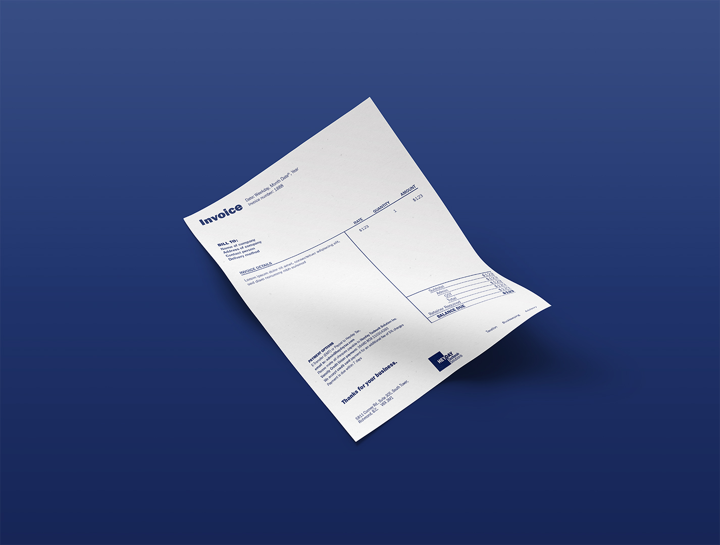 “Design” refreshed the brand identity for Heyday Taxbook Solutions, a long-standing taxation and accounting consultancy based in Richmond, BC, Canada. The new design uses the typeface of Franklin Gothic, created by URW Type Foundry, along with a classic blue square, emphasizes the professional and versatile services provided by the client financial consultancy.